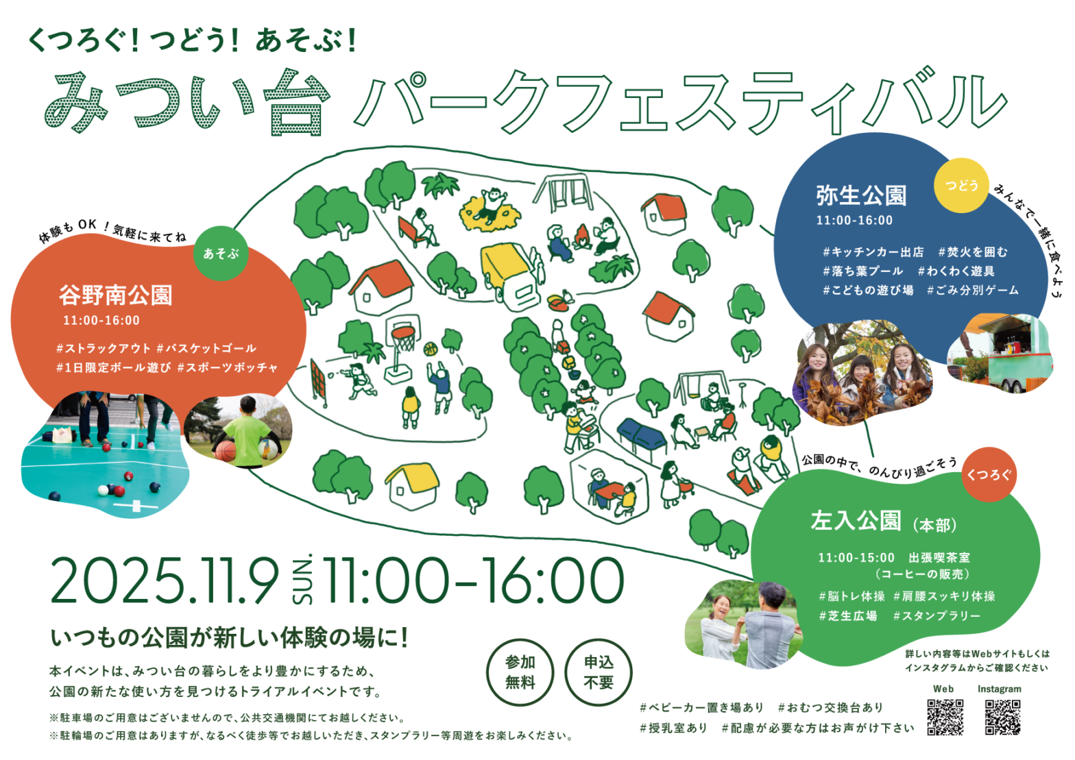 ぜひこの機会にご家族やご友人と一緒に、みつい台の公園の魅力や可能性を見つけに来てください!