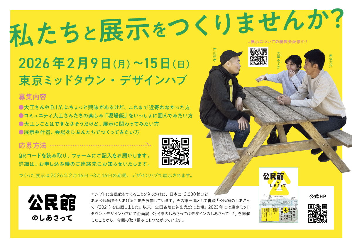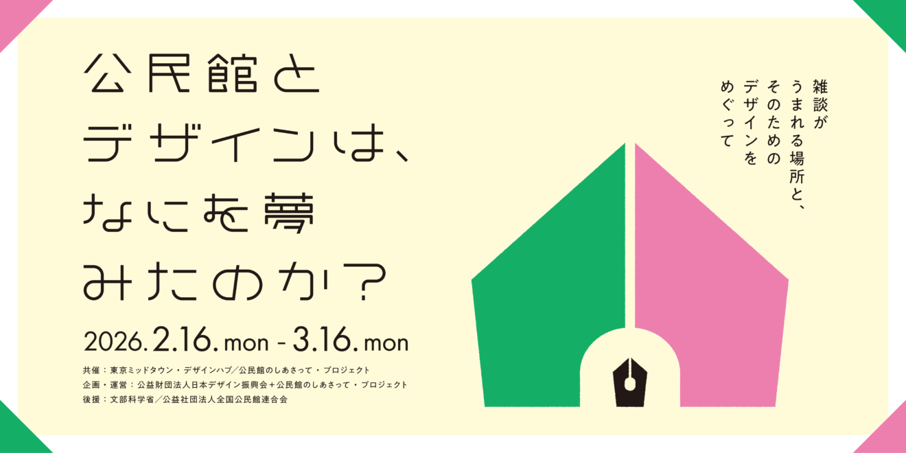 東京ミッドタウン・デザインハブでは、2026年2月16日(月)から3月16日(月)まで、「公民館とデザインは、なにを夢みたのか? ~雑談がうまれる場所と、そのためのDesignをめぐって~」展を日本デザイン振興会と公民館のしあさって・プロジェクトの共催で開催します。