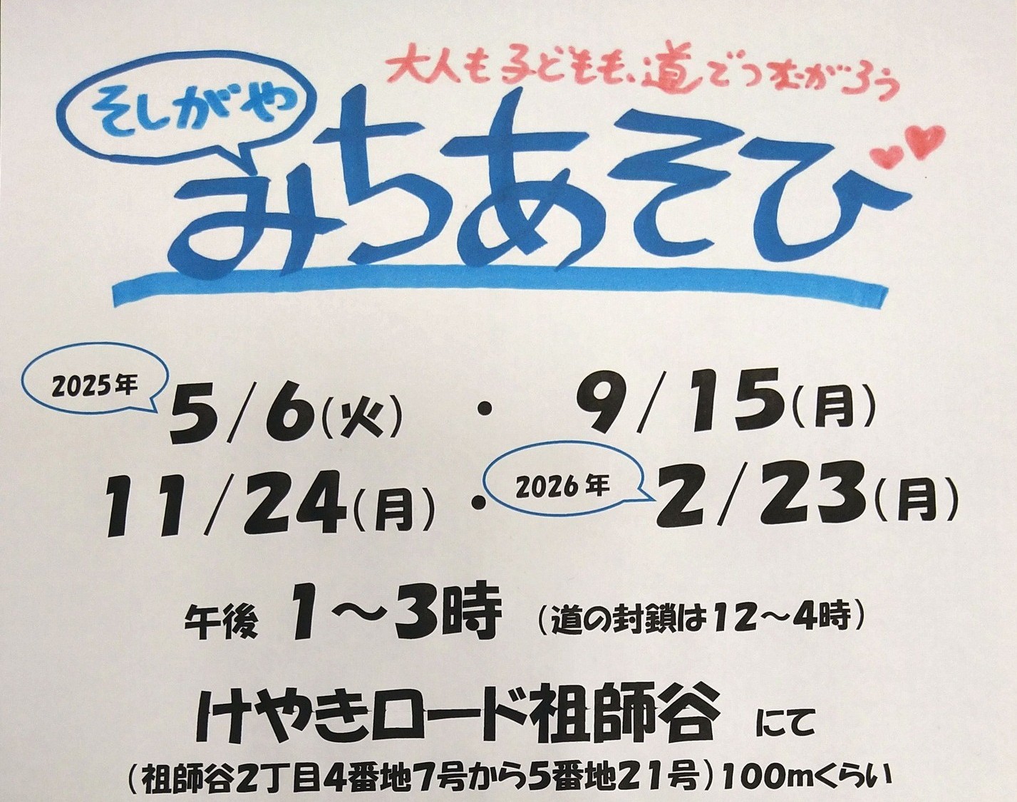 申込みは不要です。むかしなつかしい【みちあそび】です。みんなおいで~