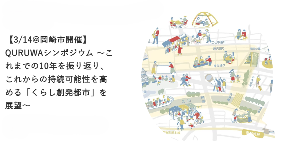 岡崎市では中心部において、民間主体の公民連携まちづくり「QURUWA戦略」を進めています。