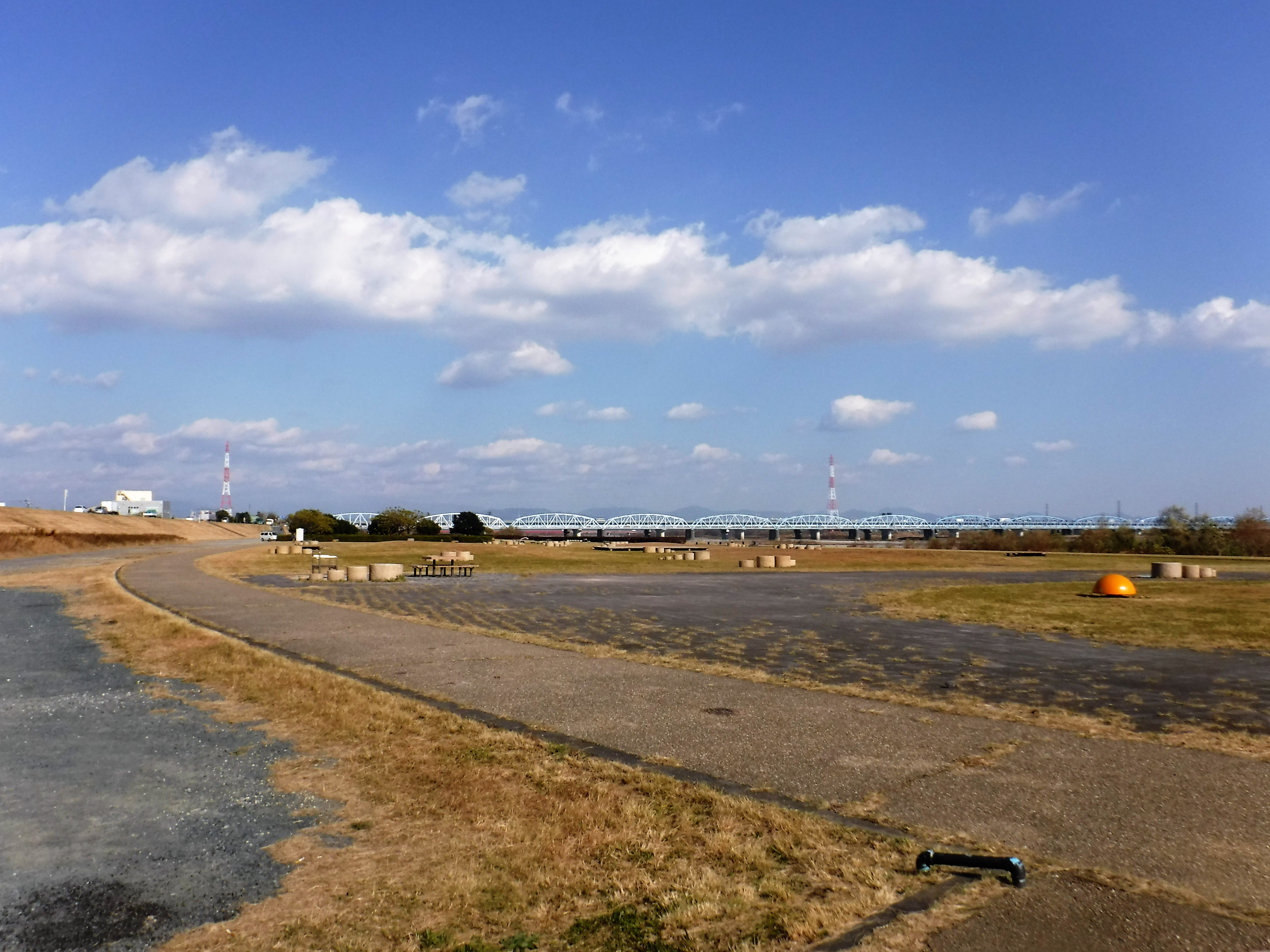 「天竜川緑地」はベンチや滑り台等の遊具がある公園エリア。トイレと水道が整備されています。サイクリングやイベント開催にぴったりです。