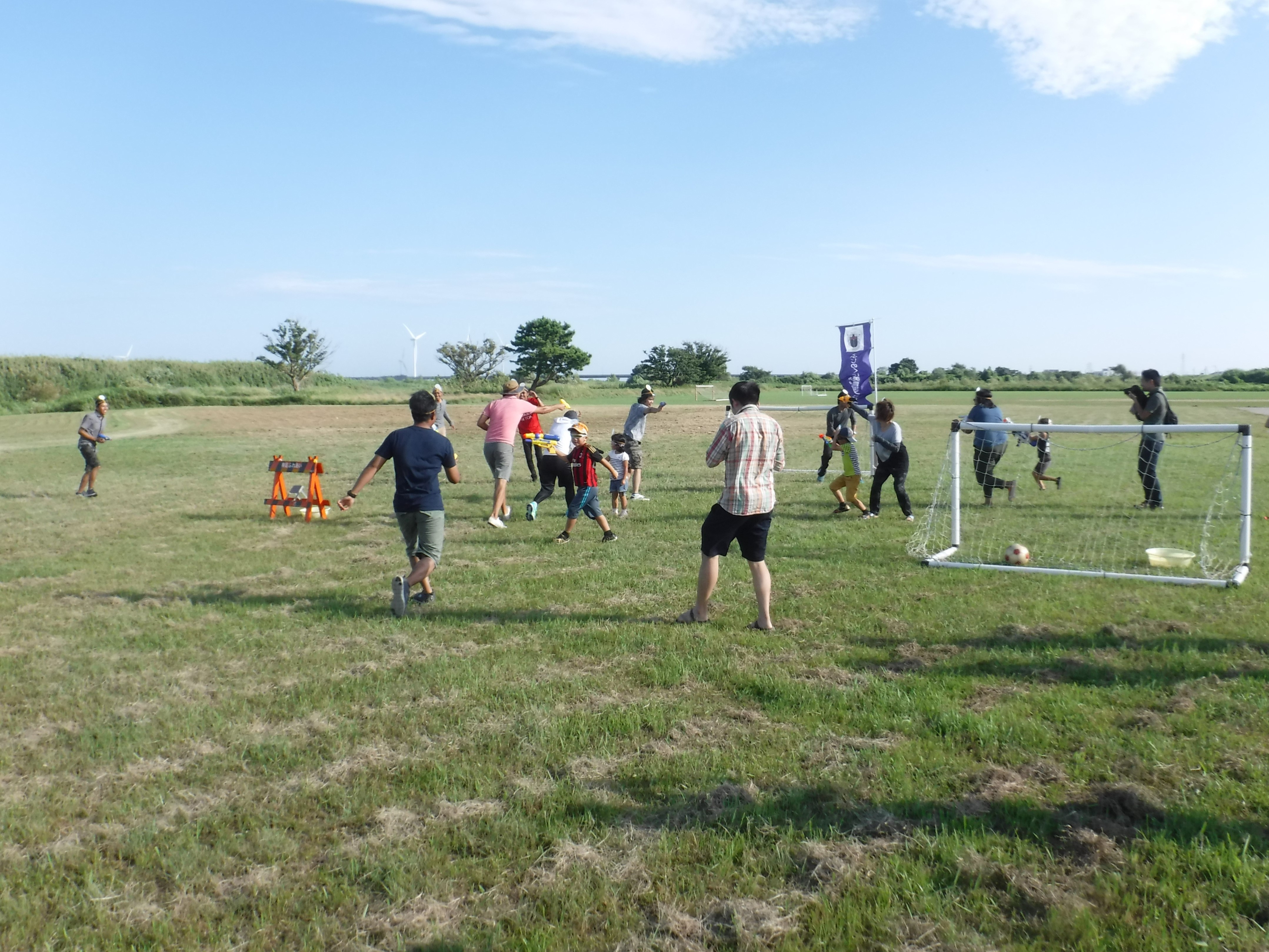 「河輪地区水辺の楽校」エリアは子どもたちが水辺に親しめるよう安全に整備されたエリアで、自然観察会などの「楽校(がっこう)」が定期的に開催されており、イベント時に賑わうエリア。芝生が整備されているため、週末はサッカーなどのグランド利用があります。物販や飲食はもちろん、楽校と絡めて教室などもよさそう。