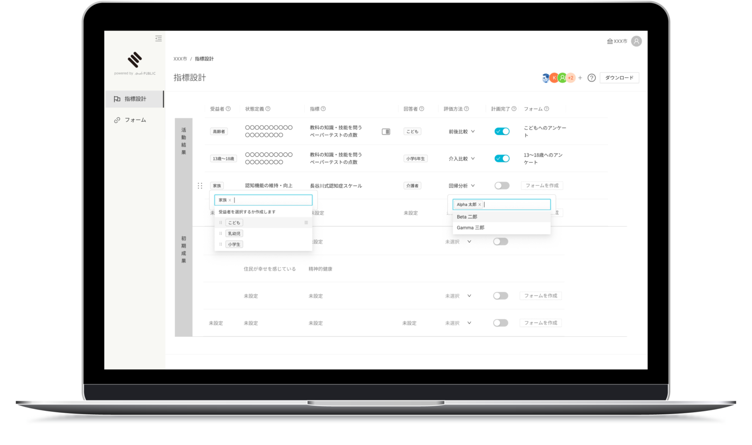 コンサルティングを通じて蓄積した顧客支援のノウハウや、測定指標のデータを標準化して落とし込んだインパクトマネジメントツール。現在はβ版で、インパクトスタートアップや地方自治体などの協力を得て、現場からのフィードバックを得ながら改良を進めている。