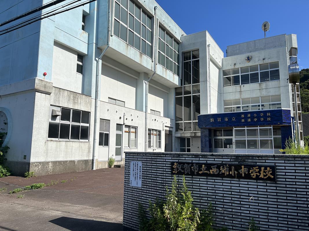 海を臨む旧西浦小中学校(福井県敦賀市)