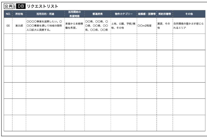 ・どんな条件の公共不動産を探しているか など