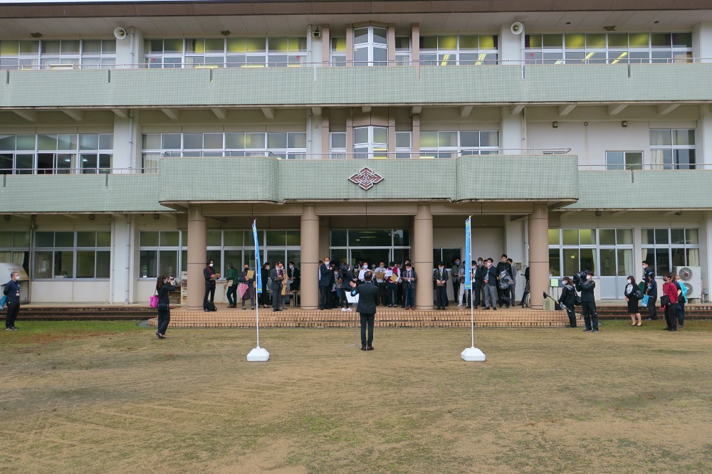 福知山市のエリア的な特性というと、京都と大阪と神戸にそれぞれ車で1.5時間でアクセスできるという利便性と、由良川が中心部を流れ自然が豊かであること、そして、そんな環境が育んだ全国9位*の出生率を誇る街。実際に福知山盆地を車で走ると、それまで山間部だったのに途端に大きな平野が現れ、豊かな土地であることがわかります。大河ドラマの主人公でもある明智光秀が善政を布いたことでも知られている場所ですね。校舎の窓からも雰囲気ある景色が眺められ、羨ましい限りです!