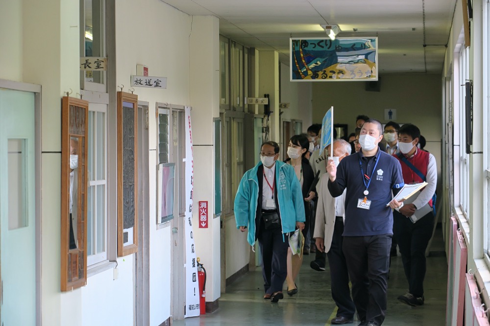 今回は、半日をかけて3つの廃校になった小学校(旧菟原小学校、旧細見小学校、旧上六人部小学校)を巡りましたが、学校の内部視察の前にそれぞれの小学校がどのような場所だったかの説明もなされました。ちなみに、今回巡った3校とも、通常の定員の1/10程度の学生数になったタイミングで廃校の決定がなされているそうです。