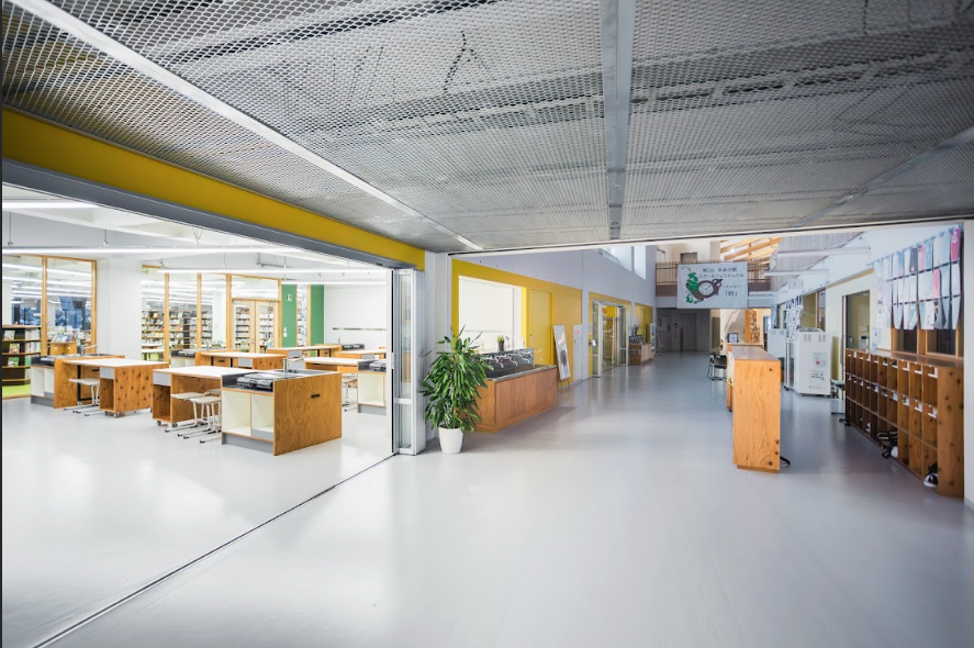 ICTを活用した管理システムによって安全と開放性を両立させ、子どもたちは学年を越えて行き交い、地域の大人たちは日常的に学校の中に足を運ぶ。そんな「分けない」風景を目指して、建築と運営の両面から丁寧につくり込まれています。