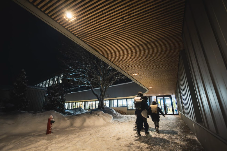 ハード面でチームラボの皆さんと考えたのが、「玄関を分ける」というアイデアです。多くの学校は玄関が一つで中をゾーニングしますが、早来学園は、最初から地域用と児童生徒用の二つの玄関を設けたのです。