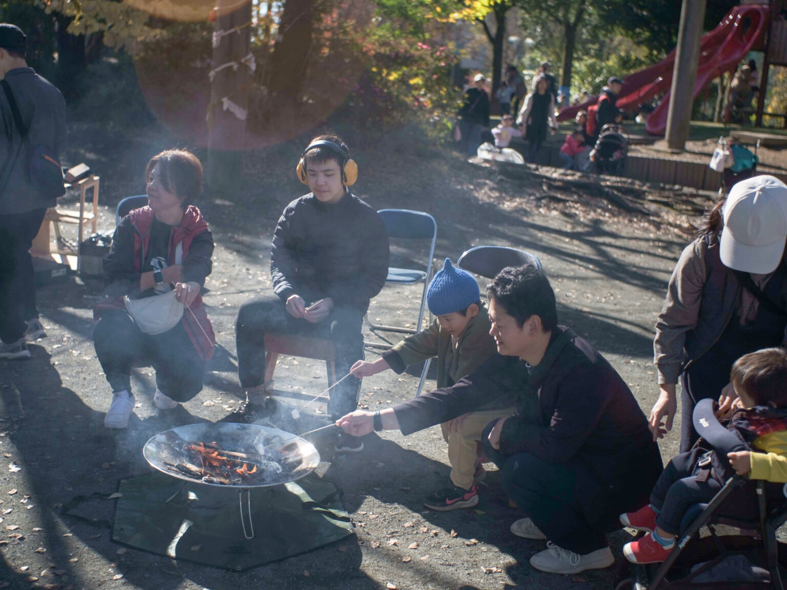 建築家兼市内の不登校支援員さんが仲間たちと一緒に、みんなで暖をとるための場所をつくります。薪をくべたり、マシュマロを火で炙っておやつにしてみましょう。小金井市教育委員会教育長の大熊さんが、焼き芋おじさんになって登場してくれるかも!?