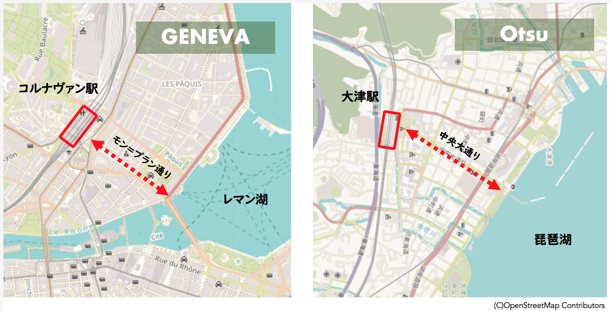 「ジュネーブ構想」とは、大津市の駅と琵琶湖の関係が、ジュネーブの駅とレマン湖の地理的な関係と類似しているところから名付けられたもの。ジュネーブでは、湖に続く広い通りにオープンテラスが並び、人々が歩いて楽しむ空間になっているそうで、大津市もそんな風に湖と街中を愉しんで回遊できるまちになろうという構想です。その第一歩として、昨年度から民間による積極的な公共空間活用が始まりました。