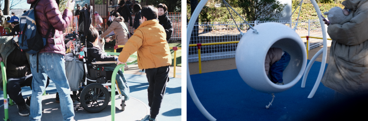 小金井市は、インクルーシブデザインに配慮した公園整備事業を進めています。2024年度には「公園を、障害のあるなしに関わらず、誰もが自由に遊べる場所にもっとしていきたい」という願いを込めて「play here」というプロジェクトとし、当事者や関係者の方々とともに理想的な公園のあり方の検討を重ね、実現に向けた活動の拡充を試みてきました。
