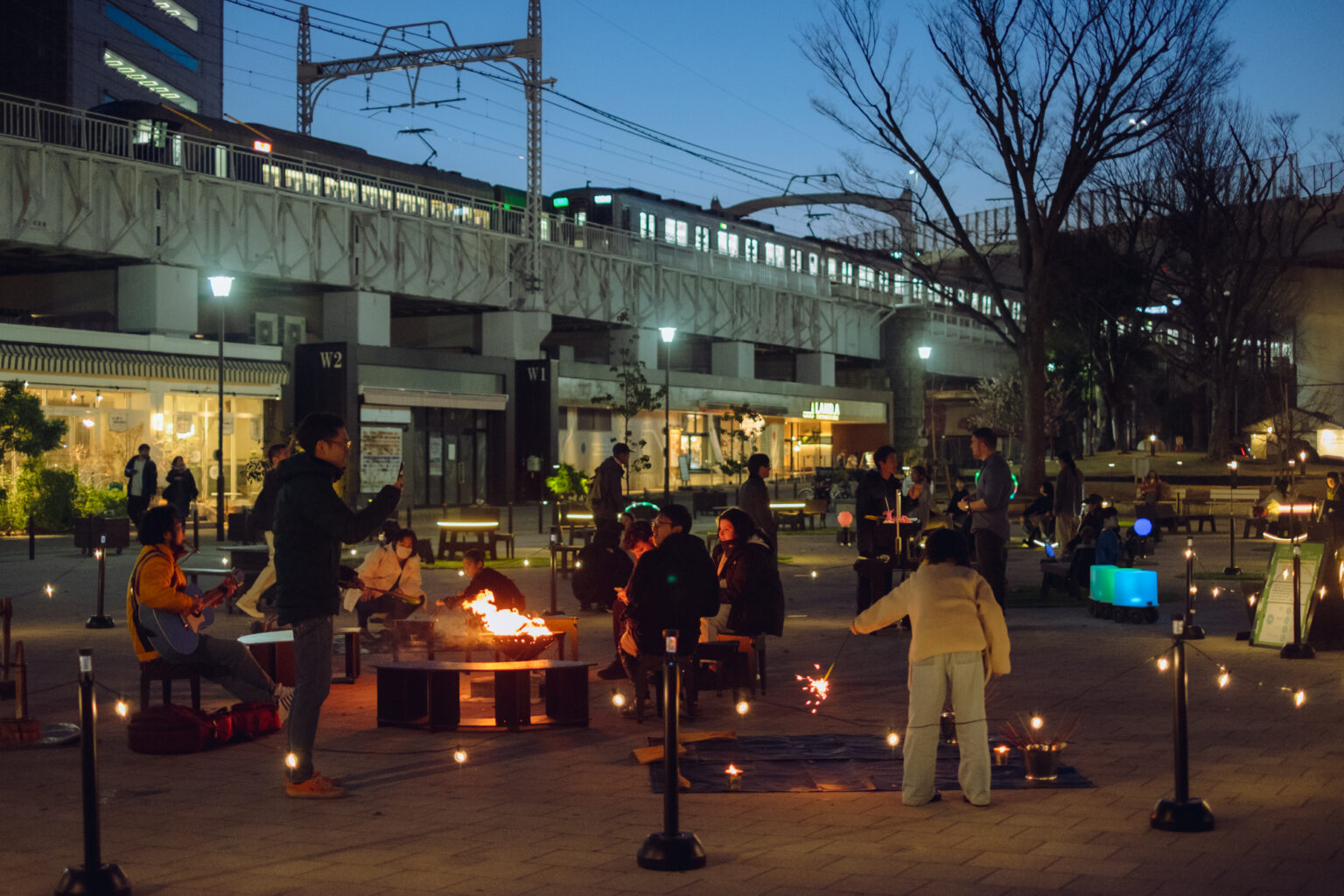 上記のように、光のツールを使って、人通りが少なくなる夜の公園を「ナイトパーク」と仕立てました。そして、さらに、焚き火や温かいしつらえで「寒さ」を「心地よさ」に変えることができたらどうなるだろう?