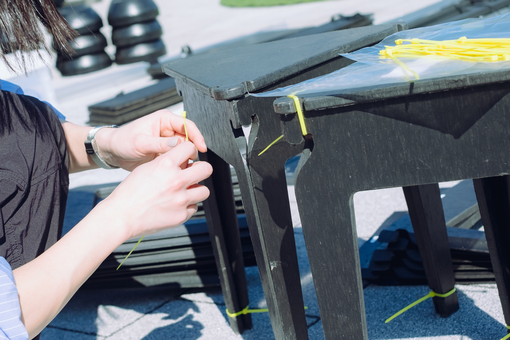 今回は、PUBLICWAREシリーズのなかから、結束バンドでパーツを組み立てることでファニチャーができあがる「BIND FUNITURE」を設置。