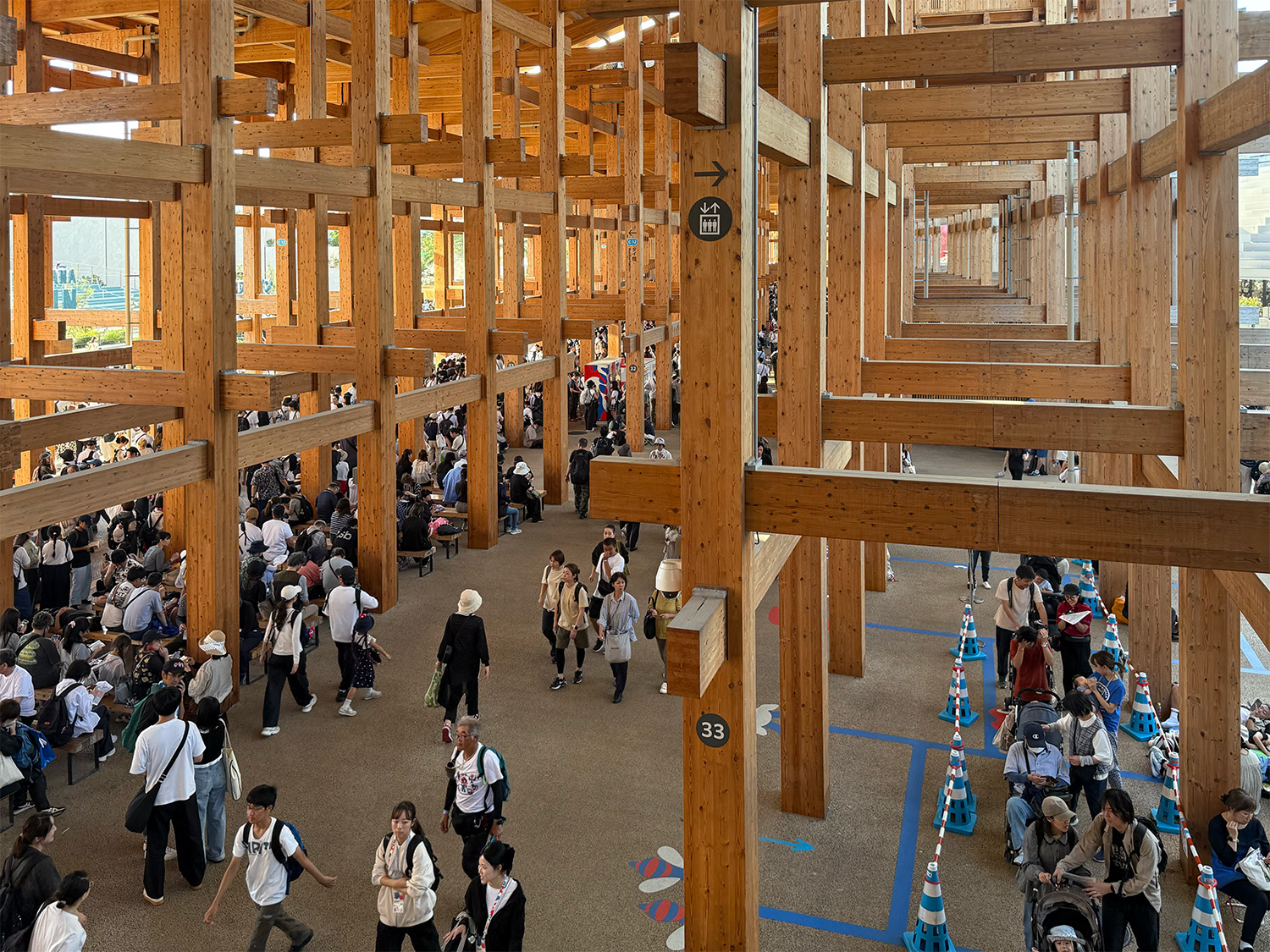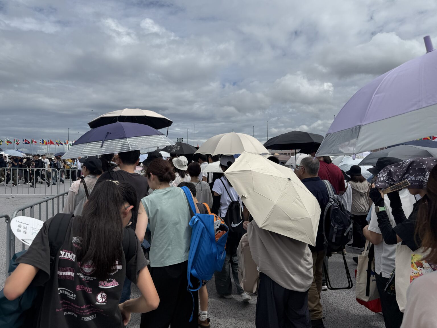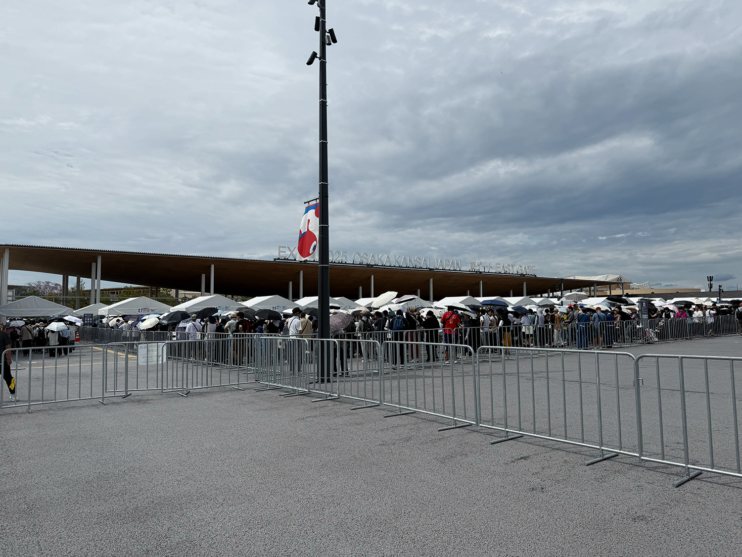 印象的だったのが、入場ゲート前の広場です。屋根はありませんが、閉会が近づき来場者が増加する9月でも、待機スペースが埋め尽くされることはないくらいに余裕を持った面積が確保され、体感7割ほどの人が日傘をさしながら並んでいました。