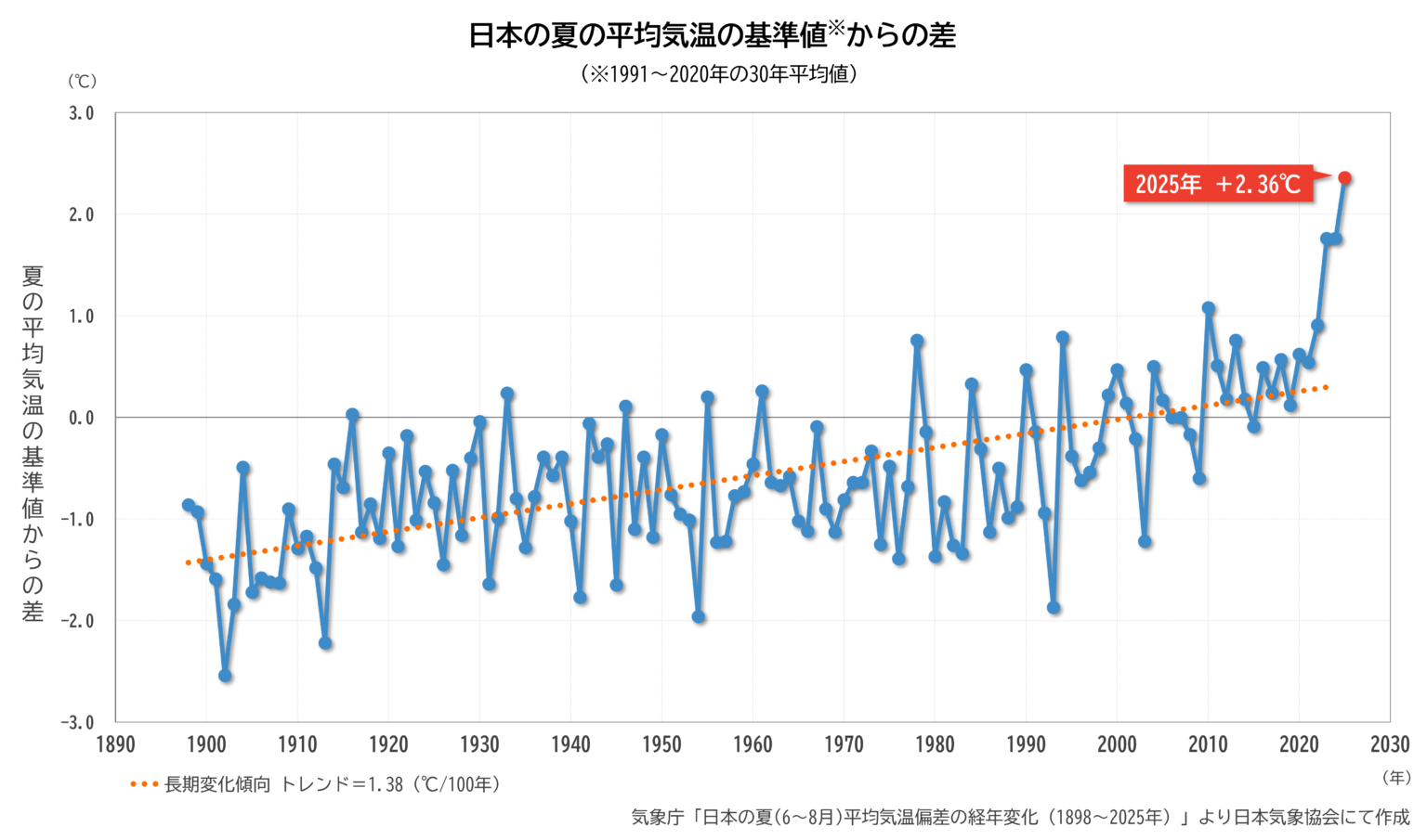 北・東・西日本では夏(6~8月)として歴代1位の高温を記録、梅雨明けは早く、残暑も厳しい──気がつくと4か月近く暑さが続いていました。長期的な気温上昇が進む中で、日本の夏は、これからさらに暑く長くなっていくのでしょう。