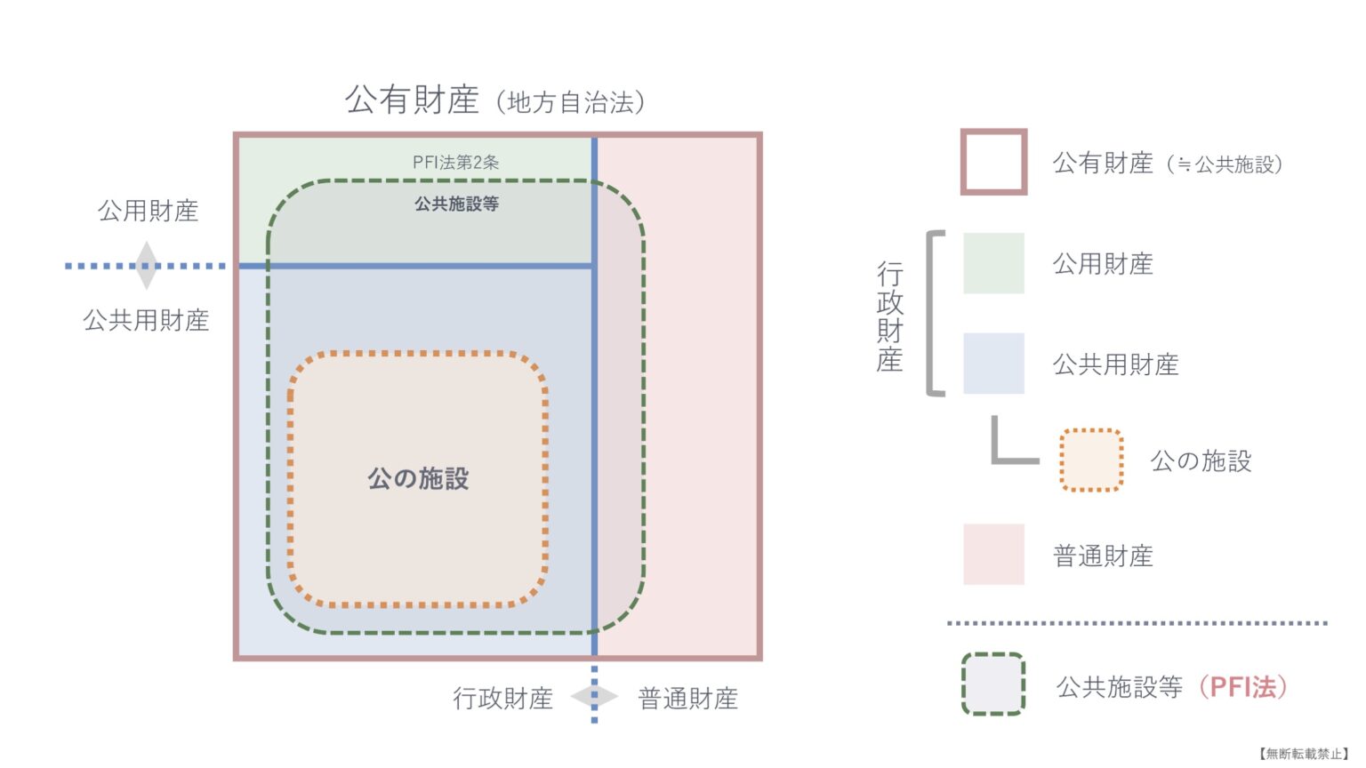 コンセッション方式を理解する上で、地方自治法の二つの言葉、「公有財産」と「公(おおやけ)の施設」の関係性を知ることが不可欠です。