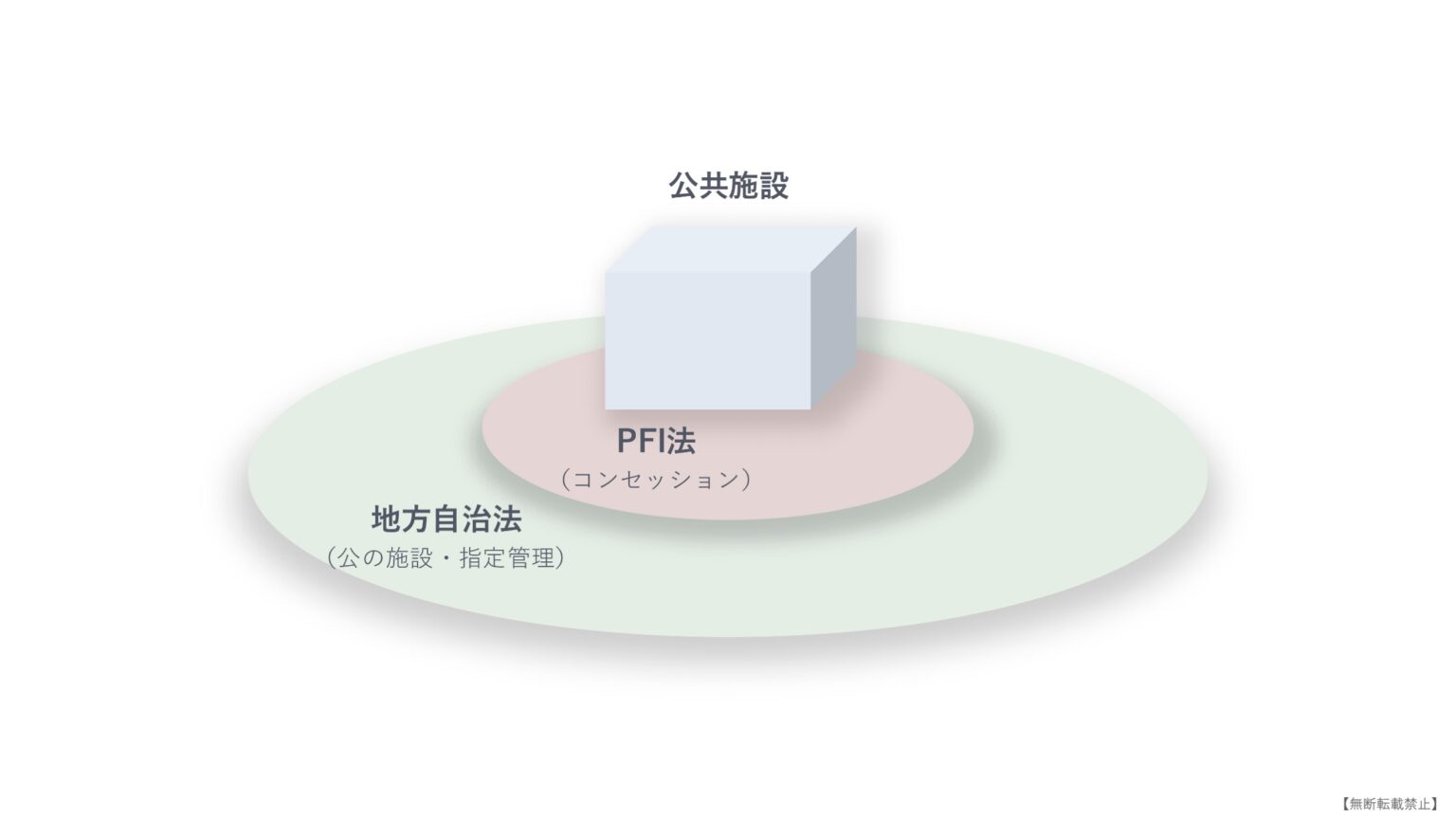 コンセッション制度のポテンシャルを最大限に引き出すためには、PFI法だけを見るのではなく、地方自治法上の位置づけ、特に「公の施設」の枠組みの外で事業を組み立てることが有効だと言えます。
