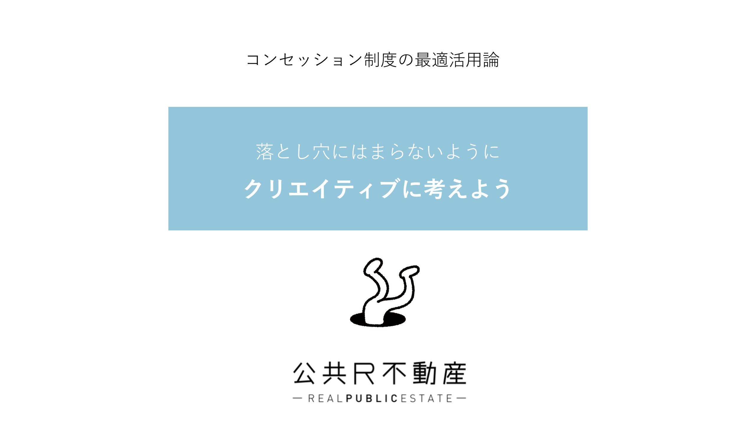 夏野さん 落とし穴-5ではPFI事業類型の「RO(Rehabilitate-Operate)」について語られていましたが、時代が進めば進むほど、「元に戻す」というより、今の暮らしに合うように「再編」することが求められます。その点で今後、PFI事業の「R」は、「Rehabilitate(リハビリテート)」から解釈もアップデートしていいのではないかと思いました。