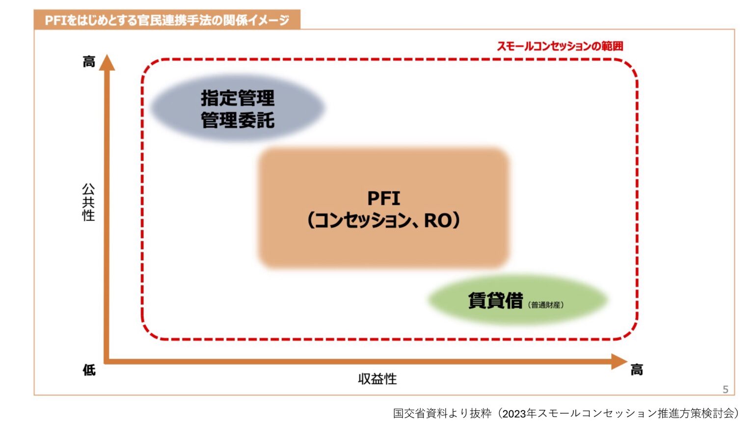 宮本 「どう進めたらよいか?」という実務者の視点に立つと、多様な手法を一枚に包含しているスモールコンセッションの範囲図(国土交通省作成)は、かえって混乱を招きますね。