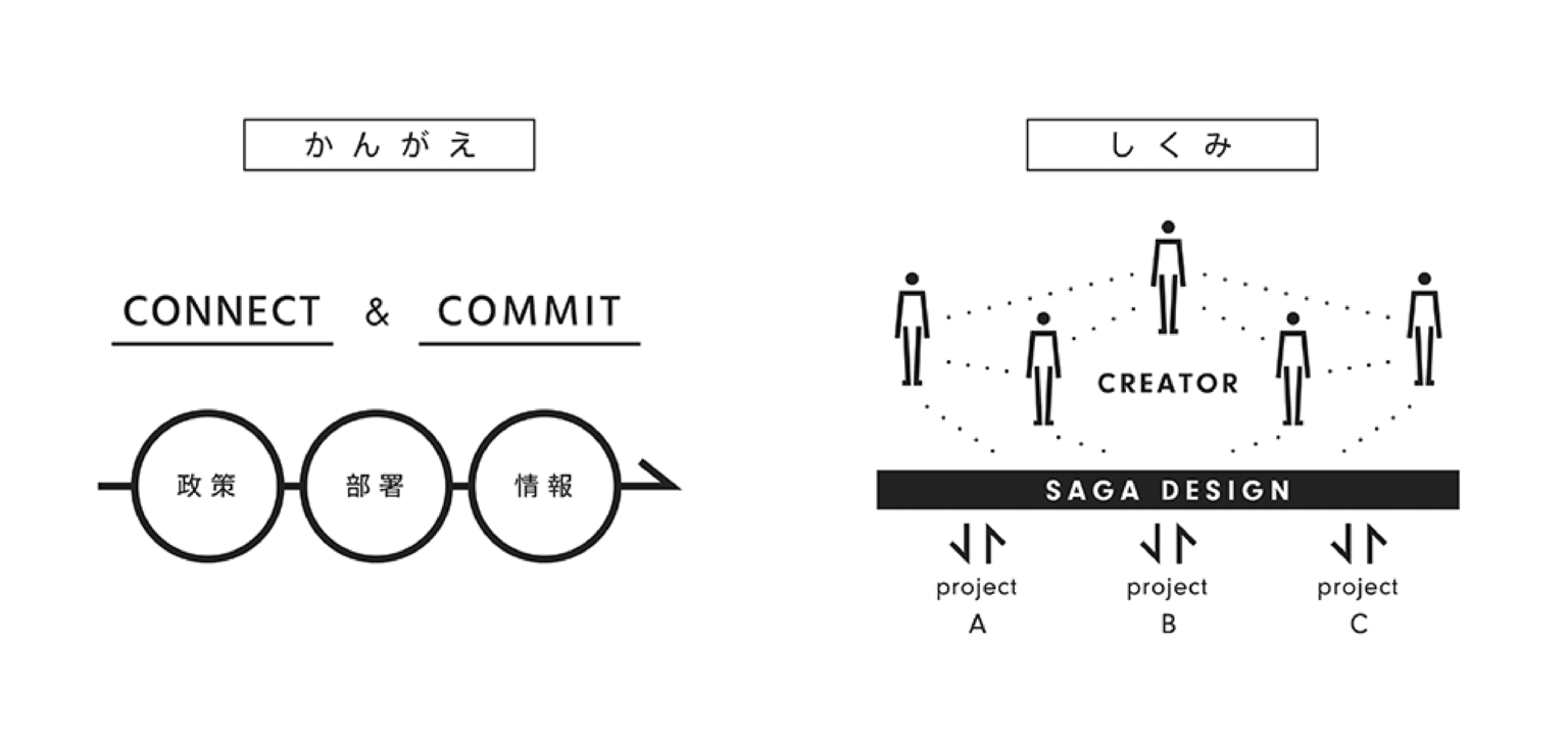 山口知事 実はこの取り組みの源流にあるのは、知事就任直後に設置した「さがデザイン」です。さがデザインは、行政施策へのデザイン視点の導入を目指したプロジェクトです。ここでいうデザインとは単に見た目を整えることではなく、政策の目的整理・コンセプトメイク・プロセス設計まで含めてデザインするのが特徴です。庁内各課から、事業の立ち上げ方、コンセプト・ネーミング、見せ方などの相談を受け、施策全体をデザインの視点で磨き上げるハブとして機能するほか、佐賀ゆかりのクリエイターやデザイナーと行政をつなぐ役割も担っています。